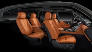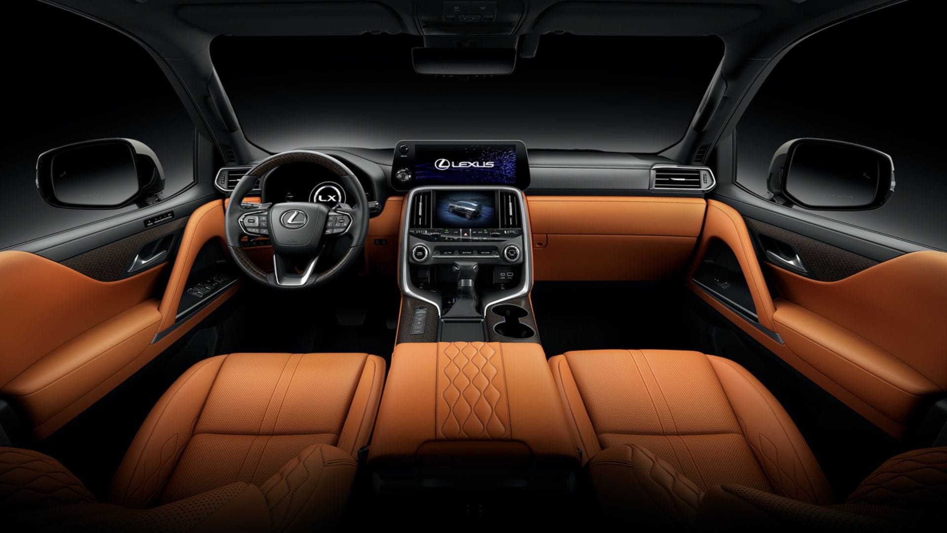 Lexus LX 600 VIP được trang bị 2 màu da nội thất bạn có thể lựa chọn để đặt hàng. Ghế ngồi bọc da Semi-Aniline chỉnh điện 14 hướng. Hàng ghế sau hạng thương gia có điều khiển đa chức năng riêng biệt tích hợp các chế độ Massage cho cả 2 ghế hành khách phía sau. Nội thất phối màu đen kết hợp gỗ Shimamoku sơn mài bóng sâu tạo chiều sâu thị giác ấn tượng.